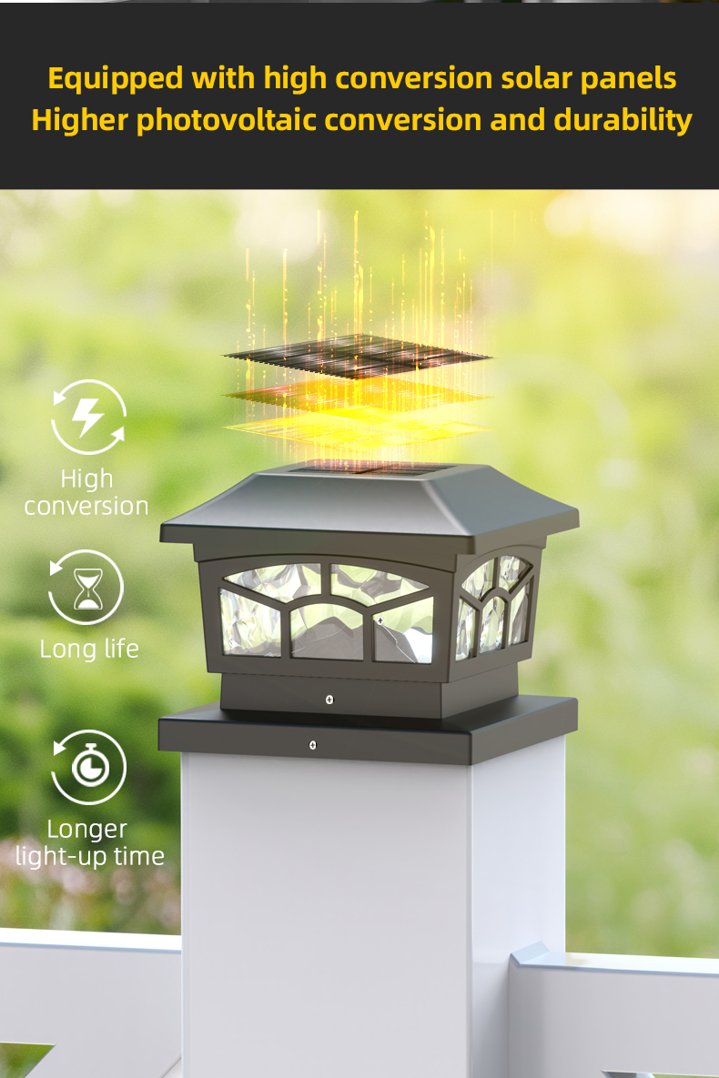Az előnyei8 LED-es napelemes oszlopsapkás kültéri vízálló lámpáink:
