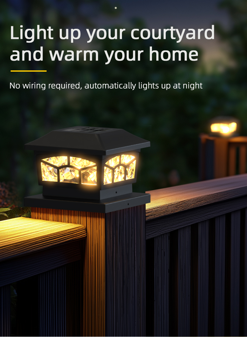 A részletek a8 LED-es napelemes oszlopsapkás kültéri vízálló lámpáink: