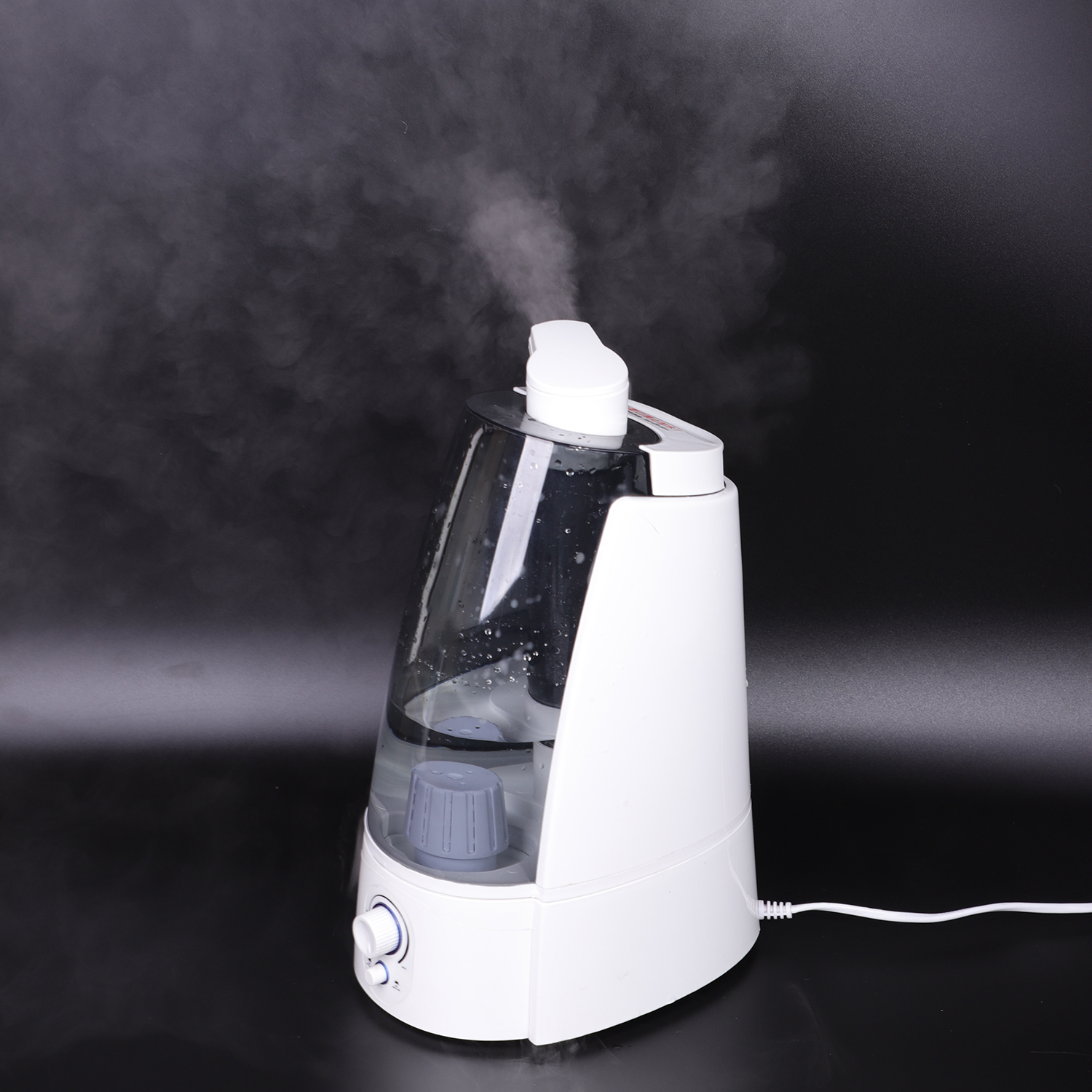 1. Állítsa be tetszőleges szögben a dupla ködfúvókákat, az automatikus páratartalom üzemmód folyamatosan figyeli a beltéri páratartalmat