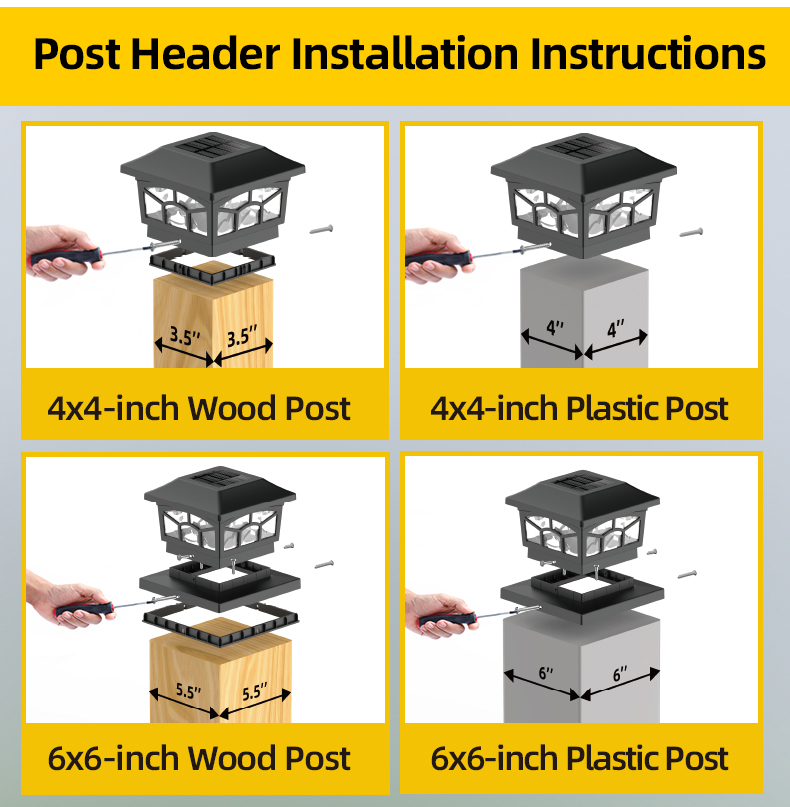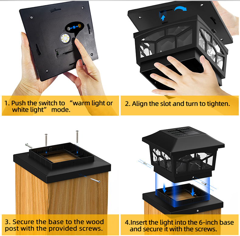 A Landsign Dual Mode Solar Post Cap Light Solar Garden Light intelligens fényérzékeny rendszerrel rendelkezik, kültéri erős vízálló és könnyen telepíthető, alkalmas udvari dekorációra, kertre stb.Két világítási mód, szabadon kiválaszthatja kedvenc világítását. A Dual Mode Solar Post Cap Light Solar Garden Light másodpercek alatt a falra szerelhető a mellékelt csavarokkal, kábel vagy vezeték nélkül.